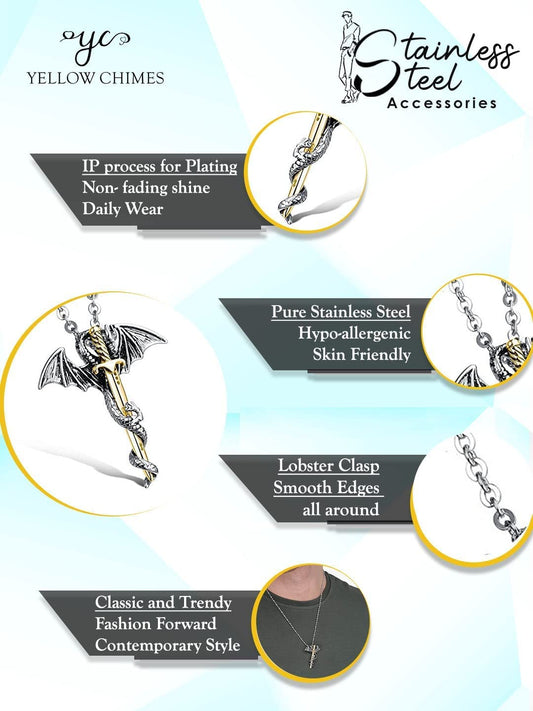 Cross Pendant for Men Chain Men Pendant Dual Tone Cross Sign Gold Polished Stainless Steel Chain Pendant for Men and Boys.