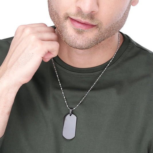 Pendant for Men and Boys Black Dog Tag for Men | Silver Toned Army Dog Tag Pendant Necklace For Men Jewelry Stainless Steel Pendant Chain for Men | Birthday Gift for Men and Boys