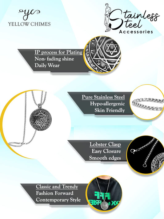 Pendant for Men and Boys Silver Pendants For Men | Stainless Steel Star Shaped Pendant Chain for Men | Birthday Gift for Men and Boys Anniversary Gift for Husband