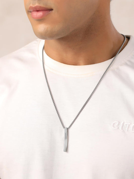 Chain Pendant for Men Fashion Silver Pendants For Men | Twisted Bar Shaped Pendant Necklace | Stainless Steel Chain for Men | Accessories for Men | Birthday Gift for Men & Boys