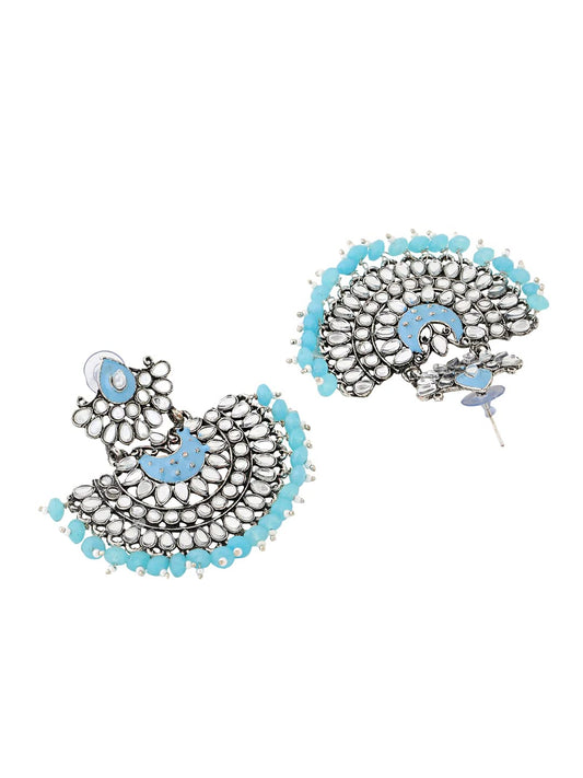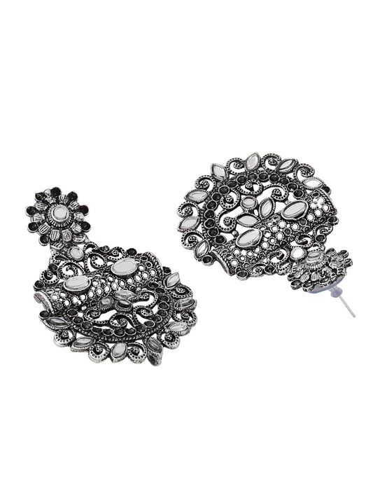 Earrings For Women Silver Toned Mirror Studded Chandbali Earrings For Women and Girls