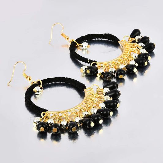 Ethnic Fusion Resin Leather Black Chandbali Earring for Women & Girls