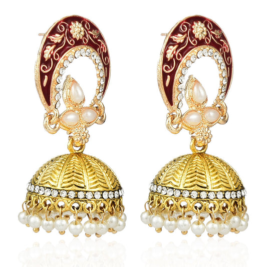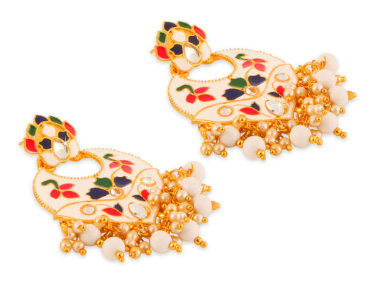 Gold Plated Enamel Meenakari Chandbali Earrings for Women and Girls