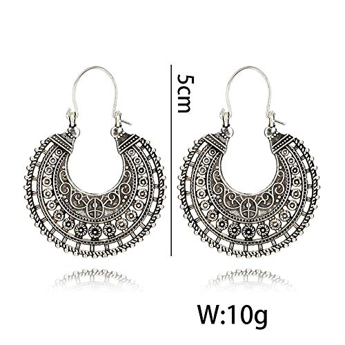 Combo of 6 Pairs Ethnic German Silver Oxidised Floral Design Beads Chandbali Earrings, silver, multicolour, medium (YCTJER-06OXDCHD-C-MC)