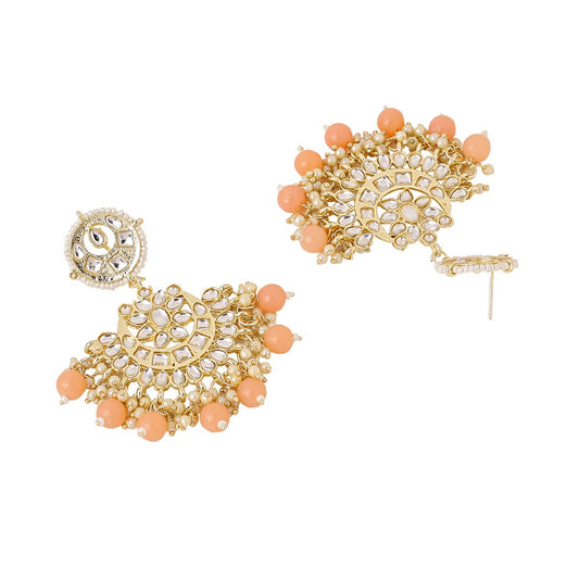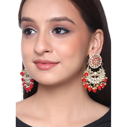 Earrings for Women Gold Toned Kundan Studded Red Pearl Drop Chandbali Earrings for Women and Girls