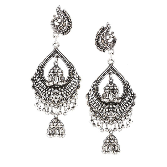 Oxidised Silver Chandbali Earrings for Women - Traditional Jhumka | One Size | Oxidised Silver