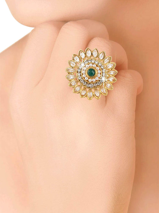 Rings for Women and Girls | Traditional Gold Cocktail Ring | Adjustable Kundan Stone Rings | Gold Plated Ring | Floral Shaped Finger Ring for Women|Birthday and Anniversary Gift..
