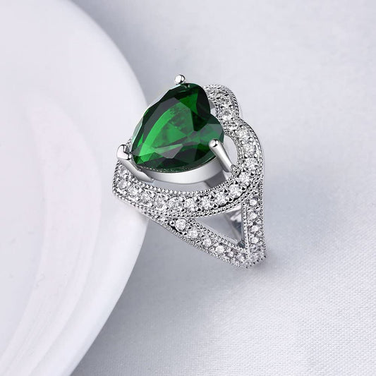 Rings for Women Green Emerald Crystal Heart Adjustable Ring Cocktail Style Platinum Plated Ring for Women and Girls.