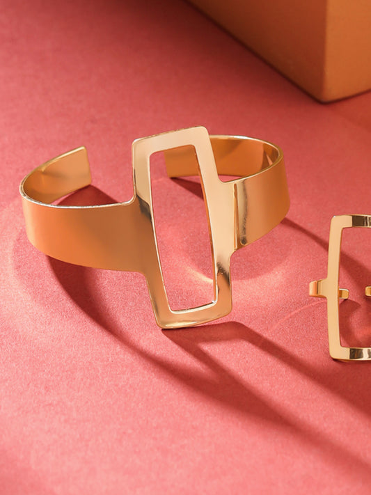 Cuff Bracelet & Ring Set: Fashion Gold Accessories | Open Kada for Women | One Size | Gold