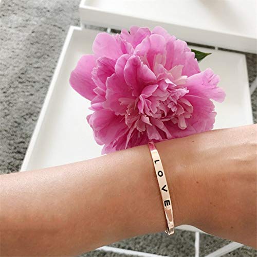 Exclusive valentine Collection Rose Gold Plated Engraved Letter Love Open Adjustable Cuff Bangle Bracelet For Men and Women