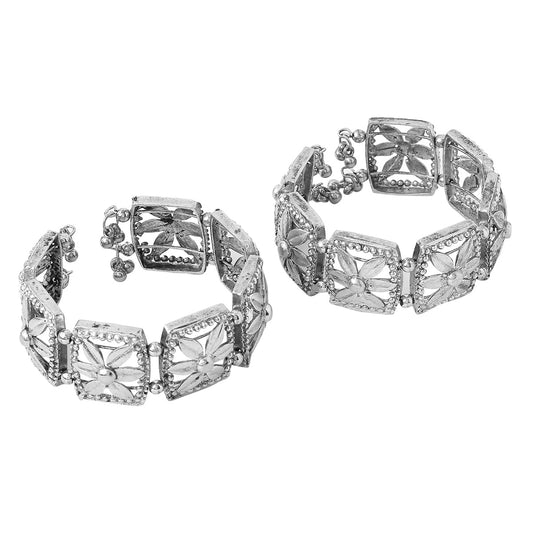 Bracelet for Women and Girls | Round Shape Silver Tone Hand Cuff Kadaa Bracelet | Birthday Gift for Girls and Women Anniversary Gift for Wife