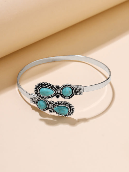 Bracelet For Women | Fashion Silver Adjustable Vintage Boho Bracelet | Blue Turquoise Stone Studded Cuff Bracelet Hand Accessories | Birthday Gift for Women Anniversary Gift for Wife