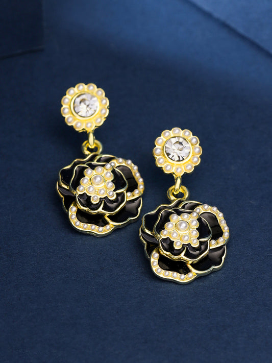 Drop Earrings for Women | Fashion Earrings for Girls Black Floral Shaped Drop Earrings | Western Style Women Earrings | Birthday Gift For Women & Girls Anniversary Gift for Wife