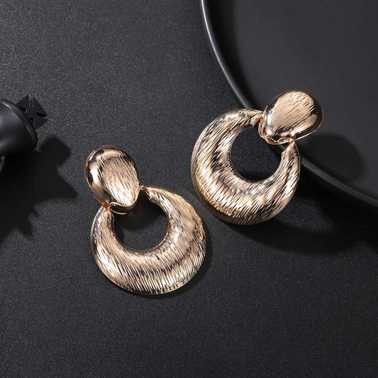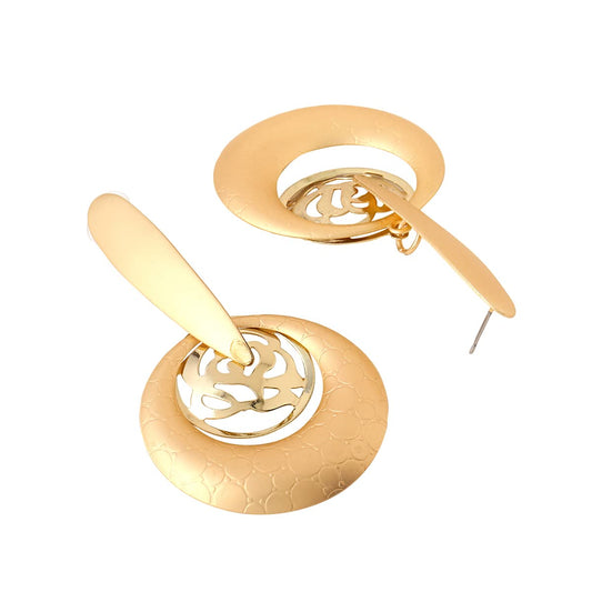 Western Style Geometric Shaped Gold Plated Circle Drop Earrings For Women And Girls