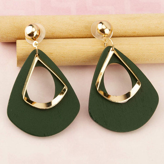 Western Style Gold Plated Green Drop Earrings For Women and Girls