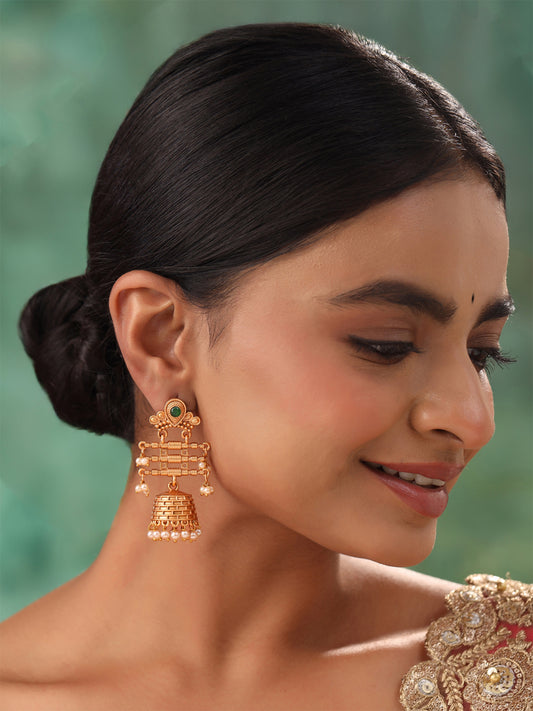 Jhumka Earrings: Traditional Gold Plated Elegance | 6cm x 3cm | Gold