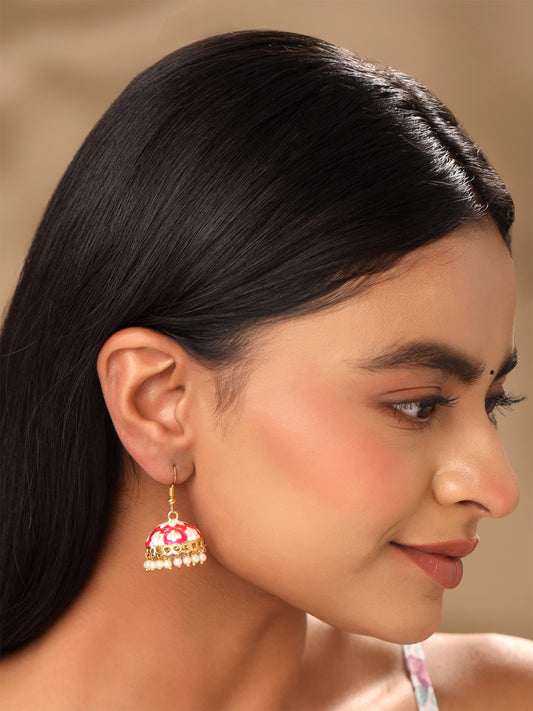 Jhumka Earrings for Women Gold Plated Traditional Pink Meenakari Lotus Chandbali Jhumka Earrings for Women and Girls