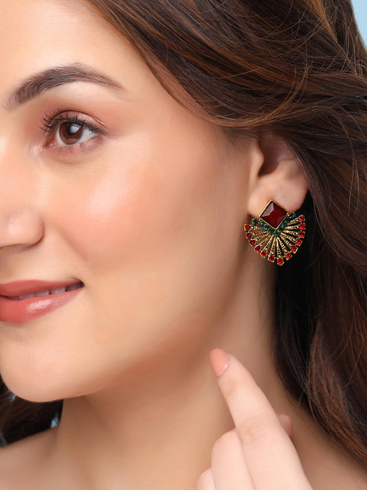 Stud Earrings for Women | Fashion Earrings for Girls Red Studs Earrings | Gold Plated Crystal Studded Women Earrings | Chic Reverie | Birthday Anniversary Gift For Girls Wife
