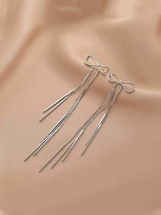 Earrings For Women Silver Toned Bow Shaped Chain Hanging Dangler Earrings For Women and Girls