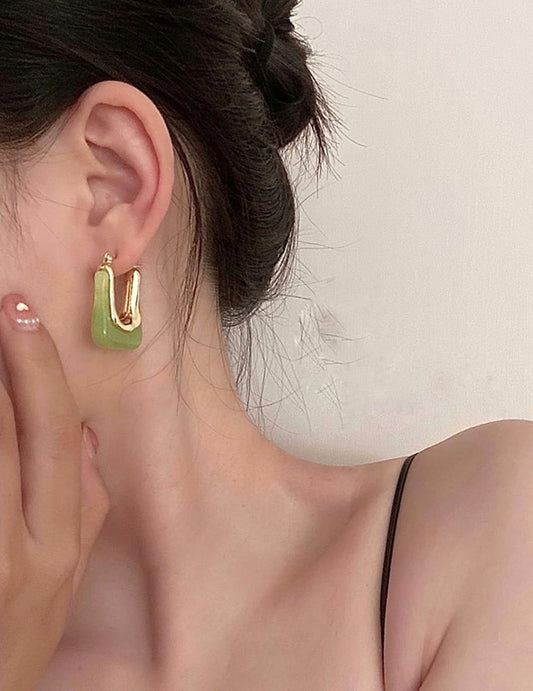 Hoop Earrings for Women Fashion Green Hoops Earrings | Gold Plated Geometric Shaped Hinged Tube Hoop Bali Earrings for Girls | Birthday Gift for Girls & Women Anniversary Gift for Wife