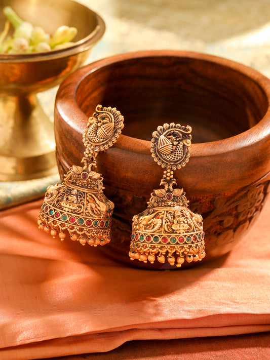 Golden Temple Jhumka Earrings: Ethnic Design with Intricate Detailing | Lightweight | 6cm