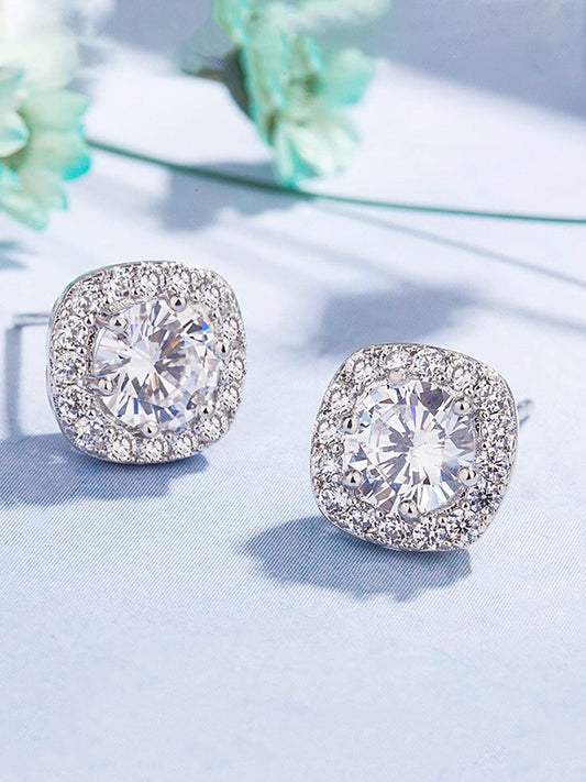 Crystal Earrings for Women Silver Plated Crystal Studded Square Studs Earrings For Women and Girls