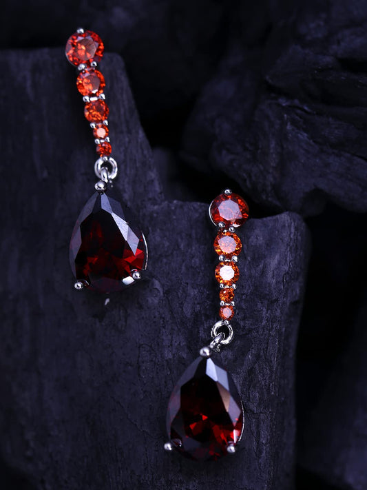 Drop Earrings for Women Red Crystal Earrings Elegant Silver Plated Crystal Drop Earrings for Women and Girls.