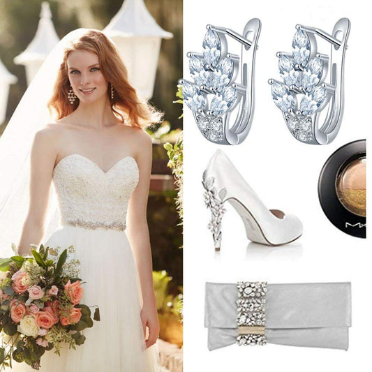 Crystal Earrings for Women Leafy Shaped Rhodium Plated White Crystal Clip On Stud Earrings for Women and Girls