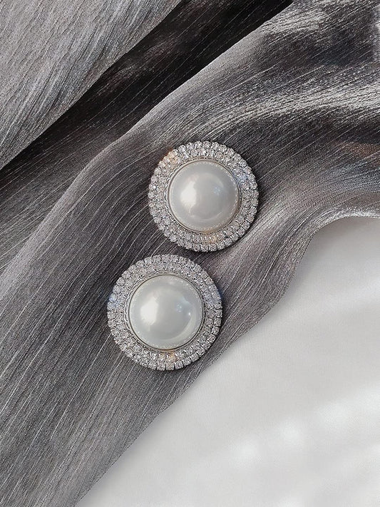Earrings for Women and Girls Studs for Girls | Silver TOned White Pearl & Crystal Studded Circular Designed Stud Earrings | Birthday Gift for girls and women Anniversary Gift for Wife