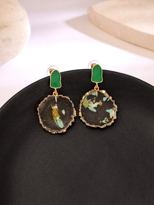 Fashion Green Flower Pressed Drop Earrings | Lightweight | Multicolor