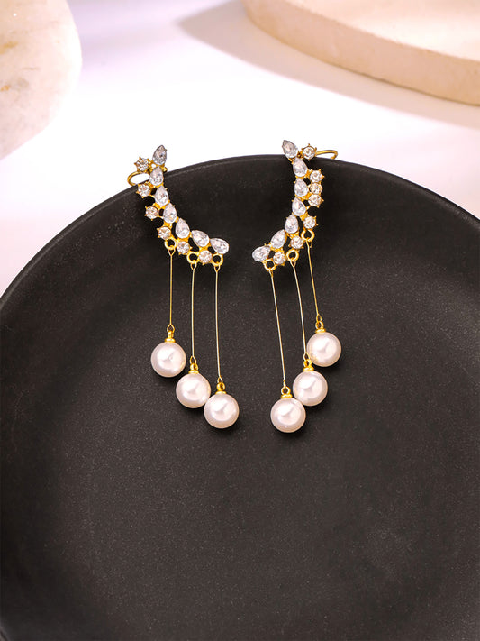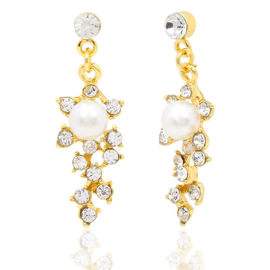 Earrings For Women Gold Tone Elegant Geomtrical Shaped Pearl Drop Hook Earrings For Women and Girls