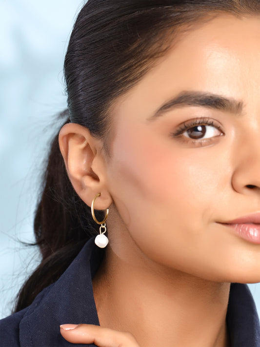 Pearl Hoop Earrings for Women | Fashion Golden Women Earrings | Western Style Gold Plated White Pearls Big Hoop Earrings for Girls | Birthday Gift for Girls Anniversary Gift for Women