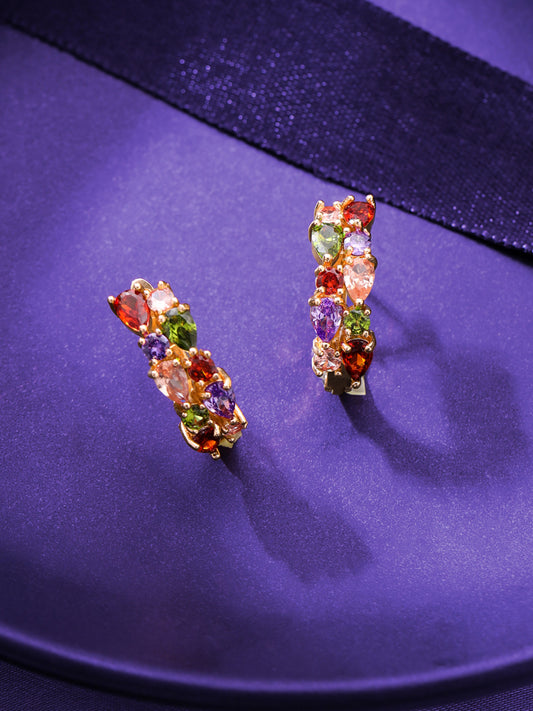 Clip on Earrings for Women Multicolors Flowerets Vine Swiss CZ 18K Gold Plated Crystal Clip On Earrings for Women and Girls