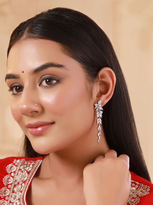 Dangler Drop Earrings for Women White Crystal Flower Designed Dangler Drop Earrings for Women and Girls