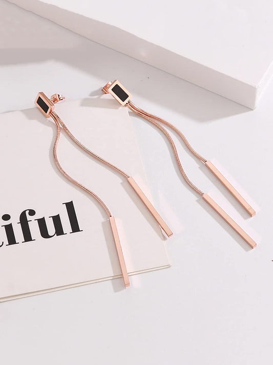 Danglers Earrings for Women Western Rose Gold Plated Stainless Steel Long Chain Dangler Earrings For Women and Girls