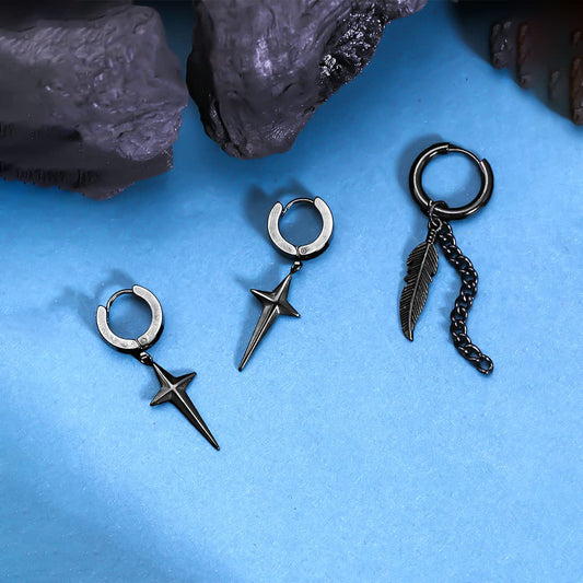 Earrings for Men and Boys | Fashion Black Hoop Earrings Set for Men | Stainless Steel Huggie Hoop Earrings Combo | Accessories Jewellery for Unisex | Birthday Gift for Men and Women Anniversary Gift for Husband and Wife