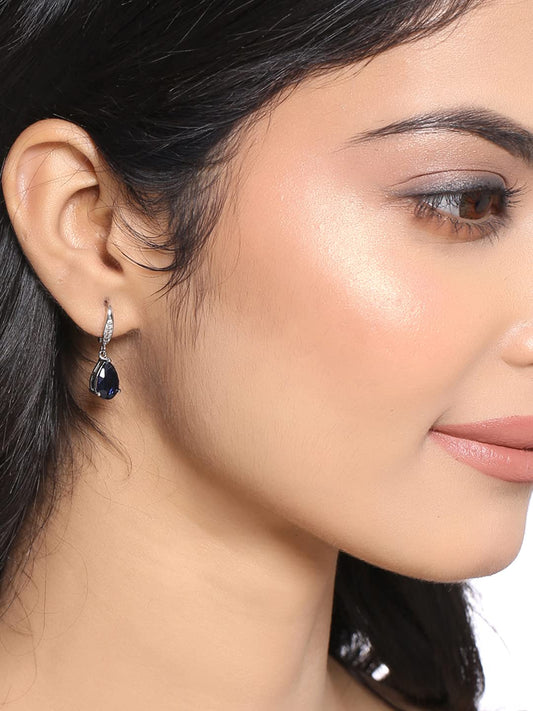 Earrings for Women and Girls Drop Earrings for Girls | Silver Tone Blue Crystal Studded Teardrop Designed Drop Earrings | Birthday Gift for girls and women Anniversary Gift for Wife