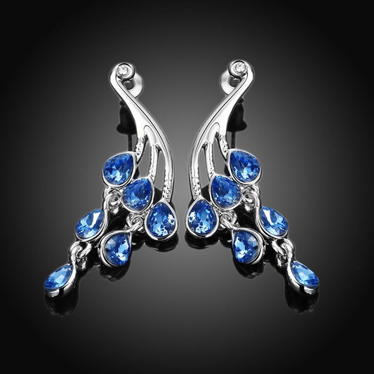 YELLOW CHIMES Mayur Blue Austrian Crystal Austrian Crystal Peacock Earrings for Women and Girls