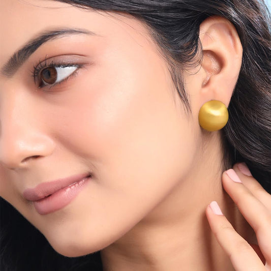 Earrings for Women and Girls Fashion Golden Stud Earrings for Women | Gold Plated Matte Brushed Round Studs Earrings | Birthday Gift for Girls & Women Anniversary Gift for Wife