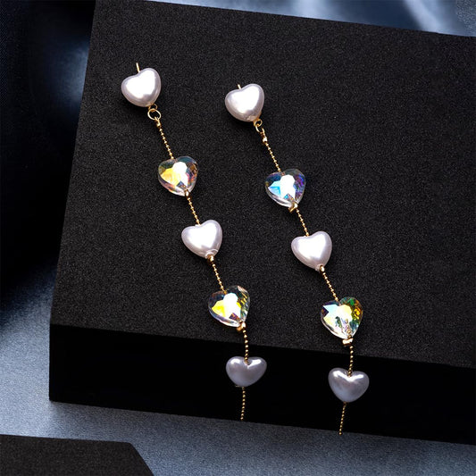 Earrings for Women and Girls Dangler Earrings Silver Tone Pearl Studded Heart Drop Dangler Earrings Birthday Gift for girls and women Anniversary Gift for Wife
