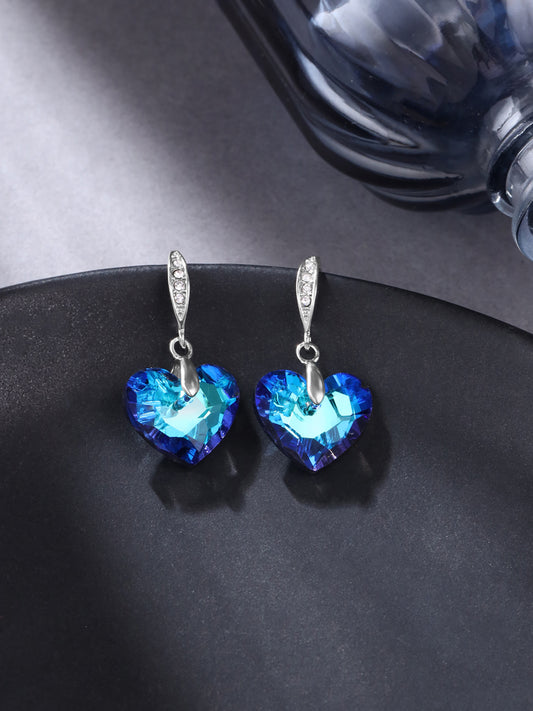 Drop Earrings For Women | Fashion Blue Women Earrings | Silver Toned Valentine Special Gifts Crystal Heart Shaped Earrings For Girls | Birthday Gift for Girls Anniversary Gift for Women