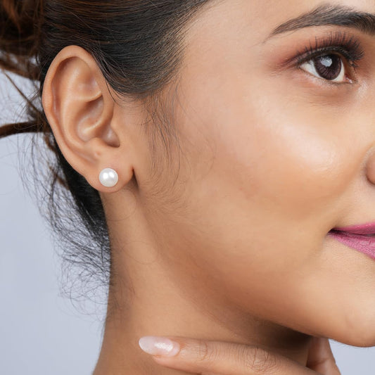 Earrings for Women and Girls Fashion Pearl Stud Earrings for Women | Rhodium Plated Faux Pearl Stud Earrings | Birthday Gift for Girls and Women Anniversary Gift for Wife
