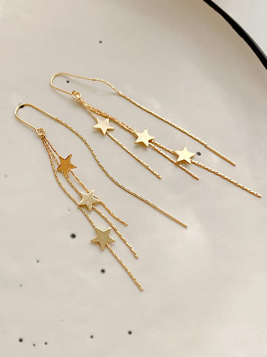 Earrings For Women Gold Tone Star Designed Hanging Multilayered Tassel Chain Dangler Earrings For Women and Girls