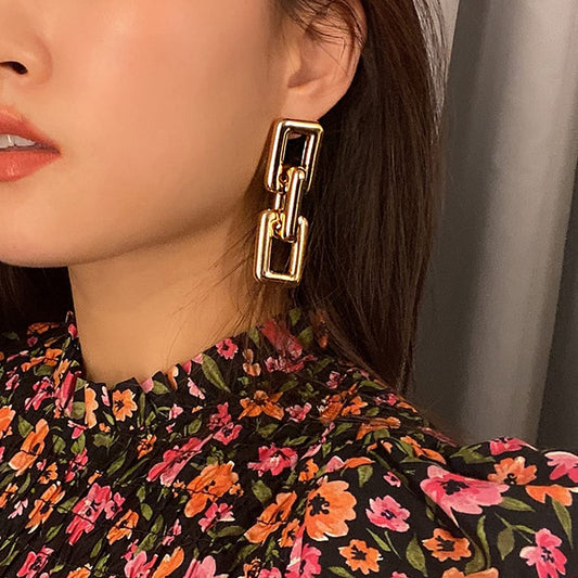 Drop Earrings for Women Combo of 2 Pairs Gold Plated Geometric Design Chain Drop Earrings for Women and Girls.