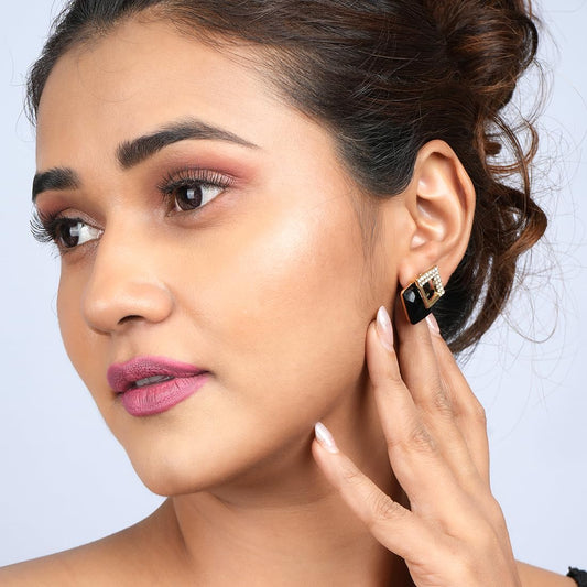 Earrings for Women Fashion Crystal Stud Earrings | Combo of 2 Pairs Gold Plated Square Shaped Studs | Birthday Gift for Girls and Women Anniversary Gift for Wife