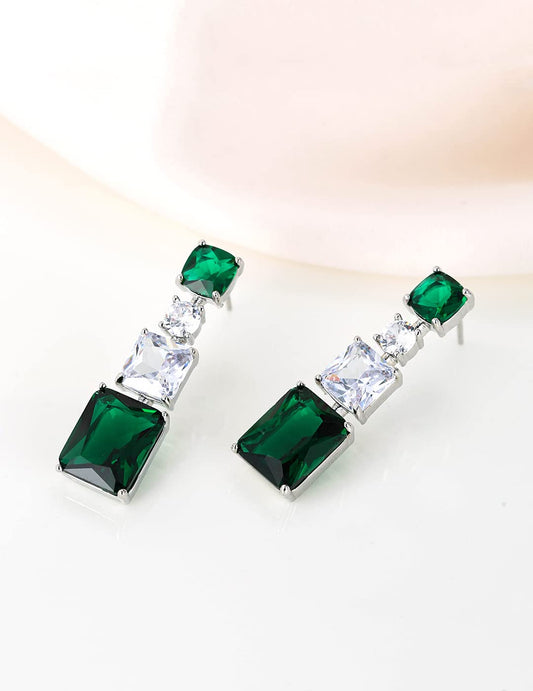Earrings for Women and Girls Green Crystal Drop Earrings | Silver Toned Crystal Green Drop Earrings for women | Birthday Gift for girls and women Anniversary Gift for Wife