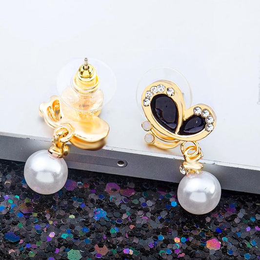 Earrings for Women and Girls | Fashion Gold Drop Earing | Gold Plated hanging Peals Drop Earrings | Butterfly Shaped Western Earrings | Accessories Jewellery for Women | Birthday Gift for Girls and Women Anniversary Gift for Wife
