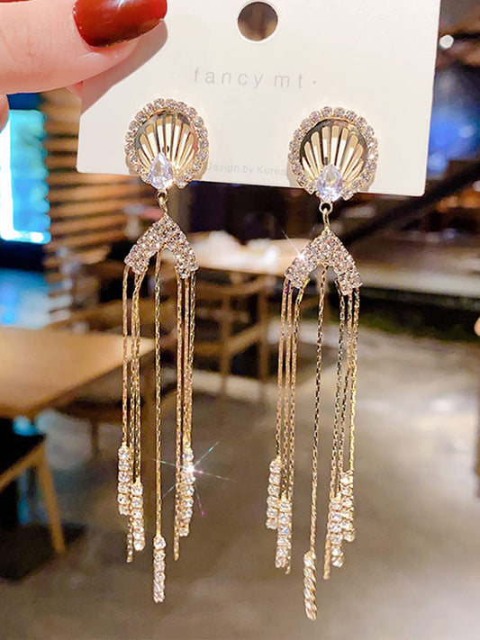 Earrings For Women Gold Tone Crystal Studded Long Chain Tassel Fringes Hanging Dangler Earrings For Women and Girls