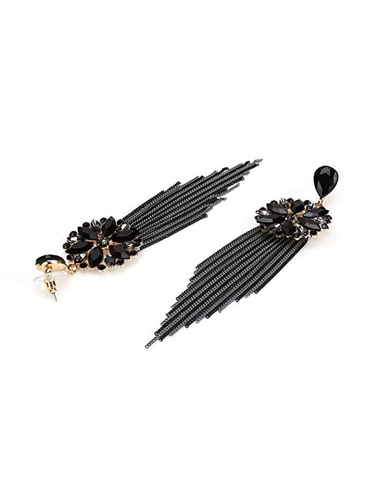 Danglers Earrings for Women Black Crystal Earrings Long Chains Tassel Danglers Earrings for Women and Girls.