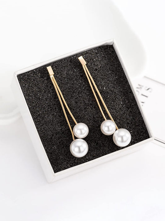 Danglers Earrings for Women | White Pearl Fashion Earrings for Women | Long Chain Gold Plated Dangler Earrings | Birthday Gift For Girls Anniversary Gift for Wife